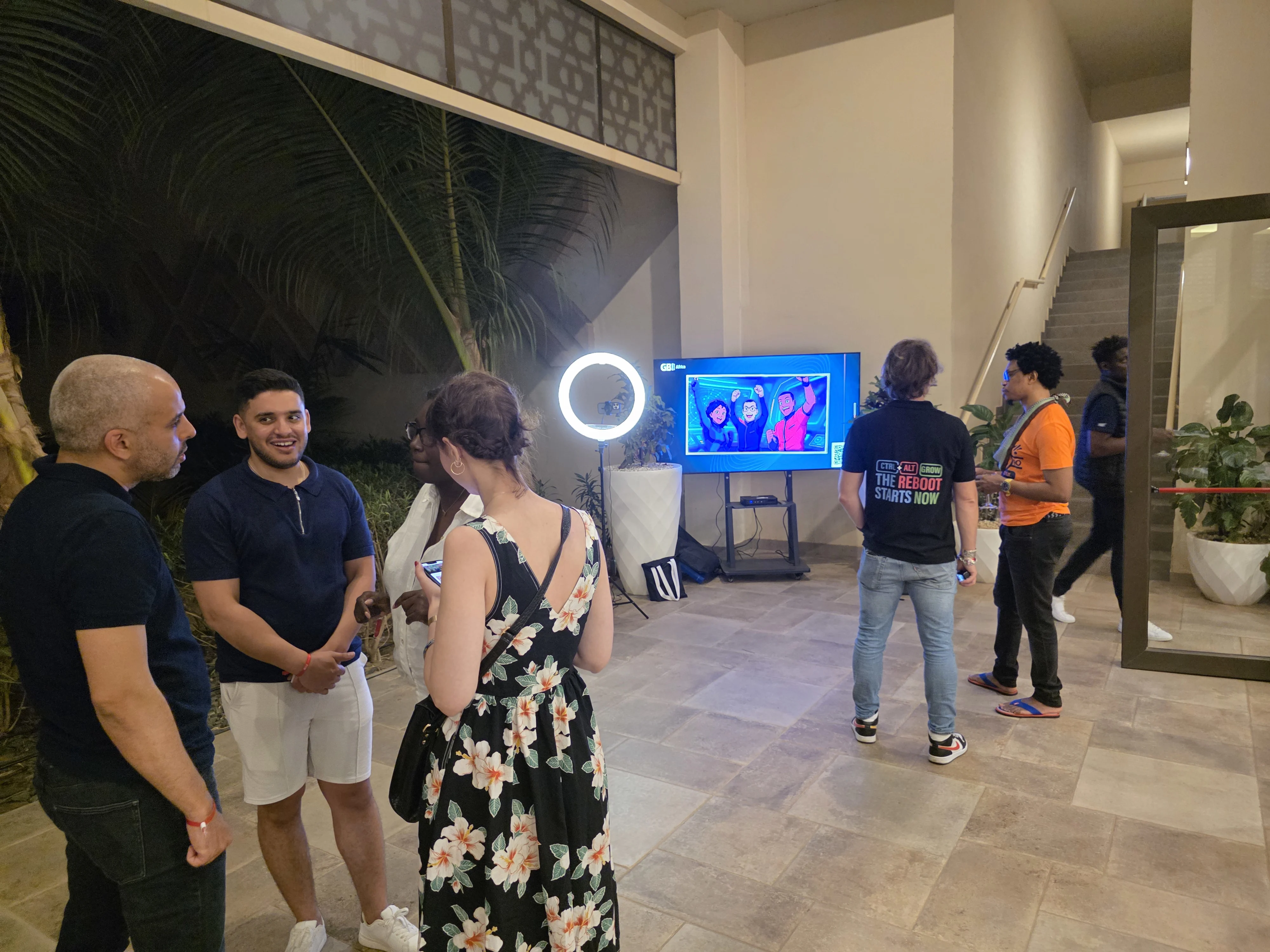 Even before the event began, attendees enjoyed a unique experience. When registering, they were asked to provide a photograph, and thanks to this generative AI solution, they received their accreditation upon arrival at the event with a personalized image. This image respected their facial features but was transformed with a unified visual style adapted to the event's aesthetic.
