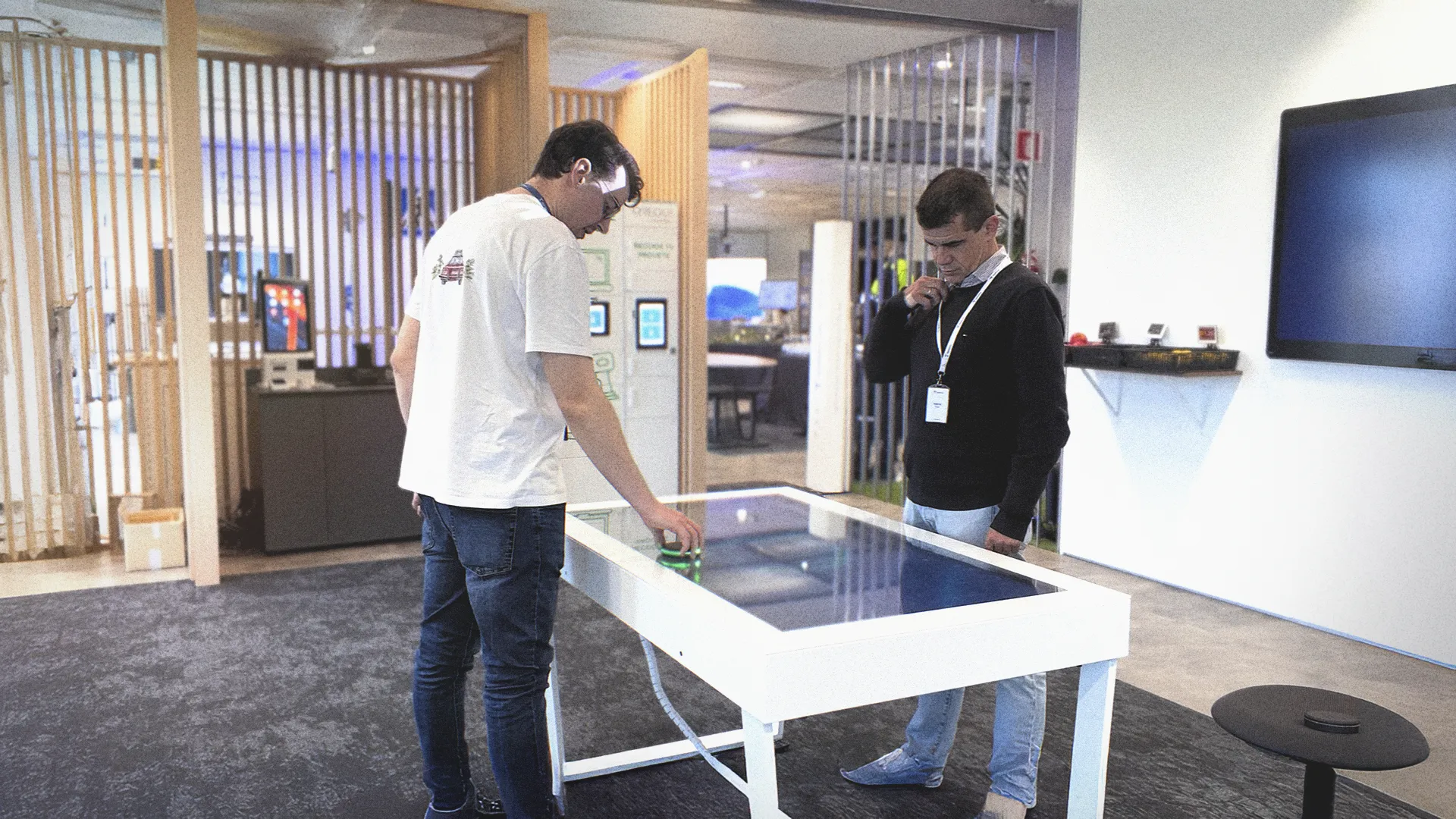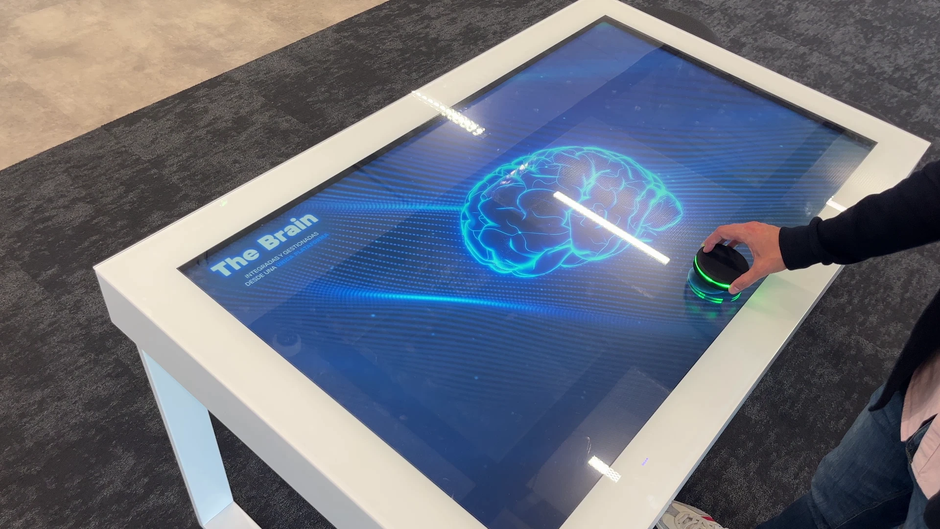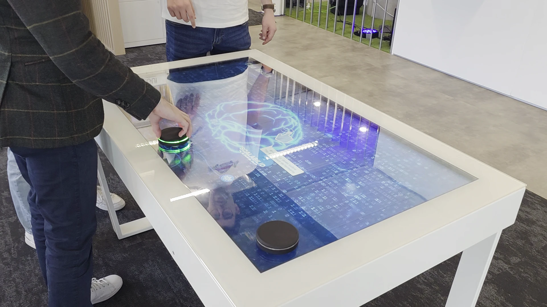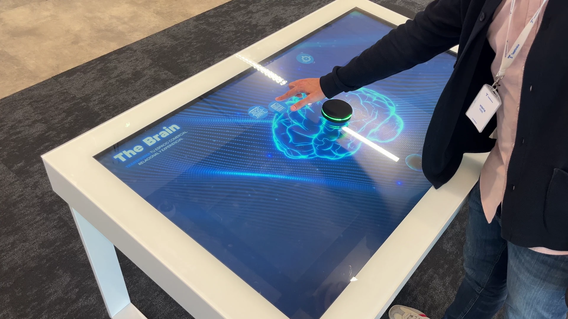 To achieve this, Telefónica entrusted DeuSens Hyperexperience as its technology partner to develop an interactive installation that would translate the key concepts of The Brain into a tangible experience. The result was an interactive table with touch capabilities, advanced sensorization, and object recognition, whose content was designed and developed to turn the exploration of the platform into a playful, informative, and intuitive journey.