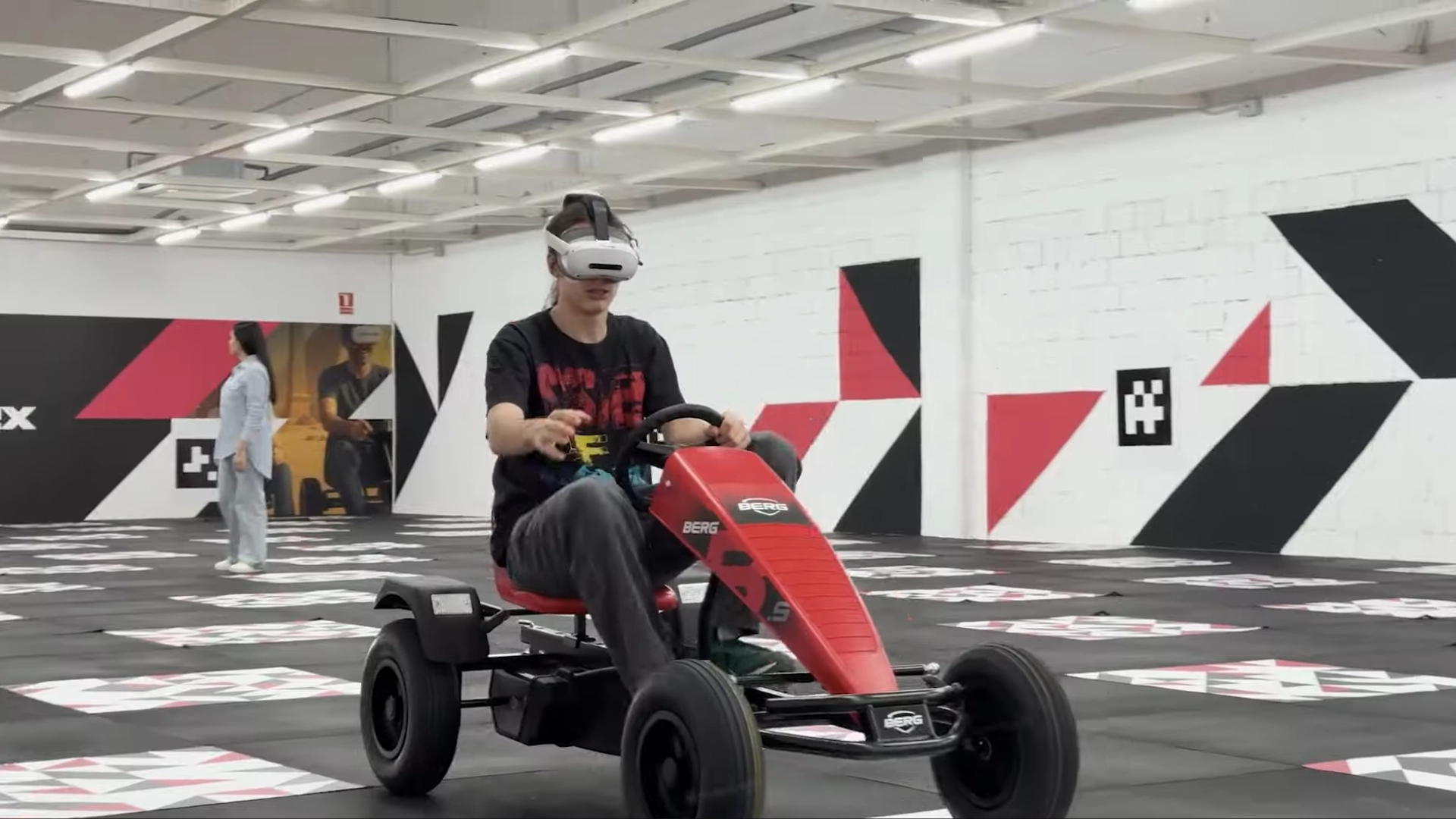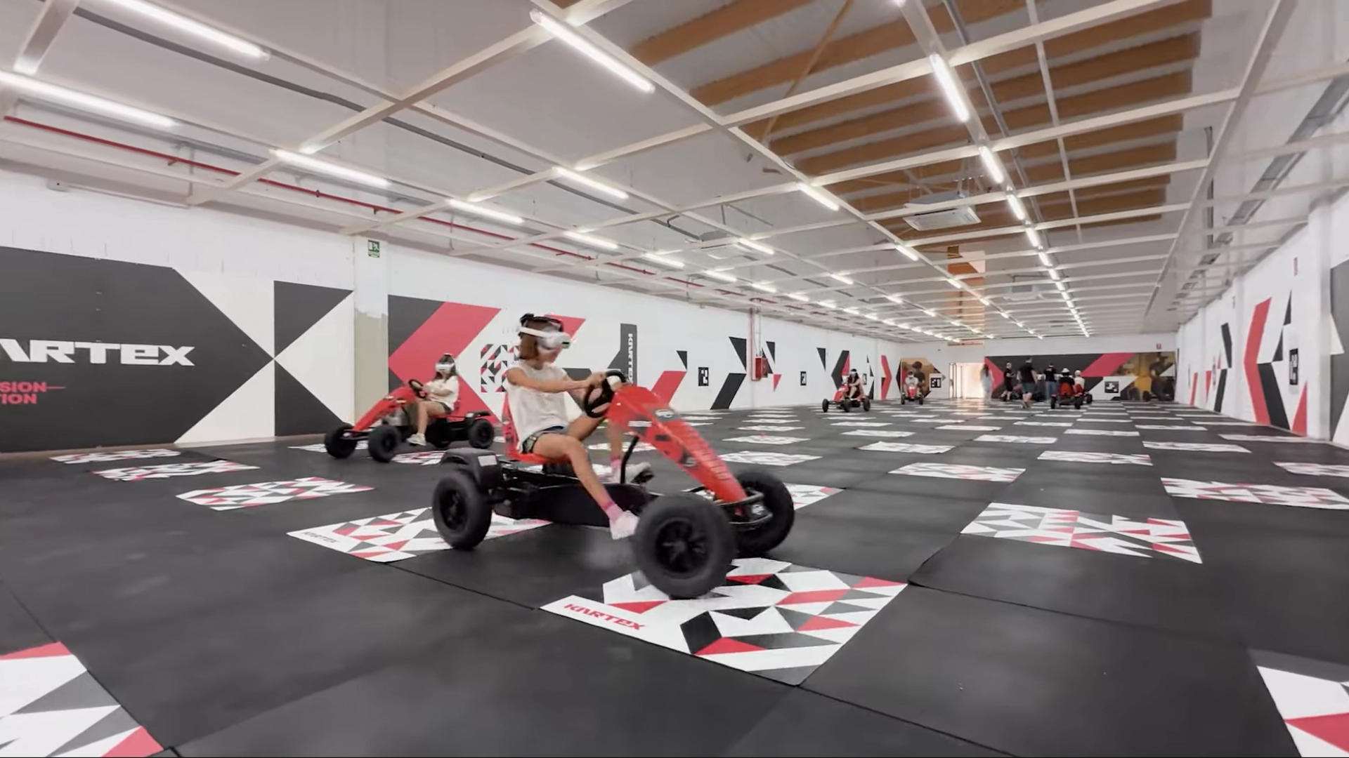 To achieve this goal, KARTeX and DeuSens joined forces to conceptualize and develop an experience that integrates the exploration of virtual worlds with physical pedaling on real karts, in a controller-free gaming environment with total freedom of movement. The collaboration focused on designing an offering that would appeal to a wide audience—from children to seniors—while also offering high replayability, thanks to its competitive component and integrated narrative.