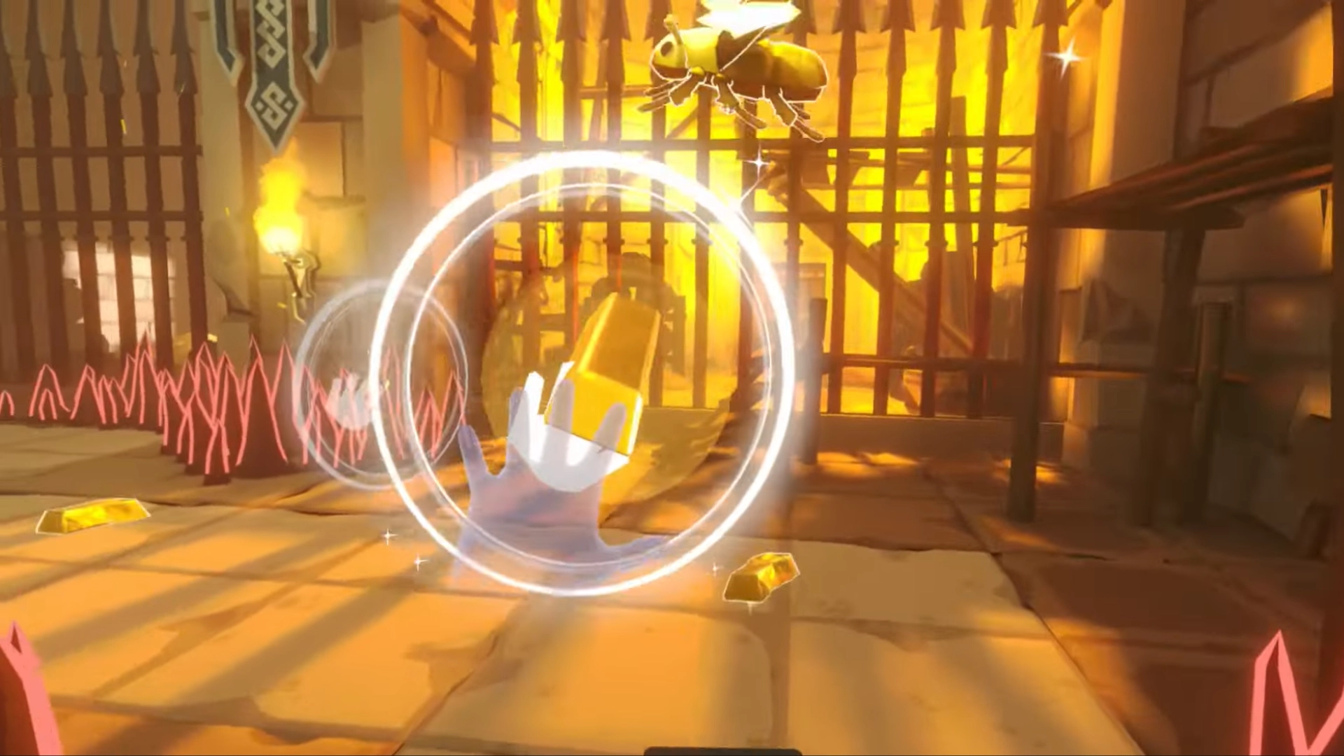 All interactions were designed to be performed without physical controls, taking advantage of the hand-tracking technology of the PICO 4 glasses. Players were able to collect gold, activate mechanisms, and repel enemies using natural gestures, which added a sense of freedom, immersion, and accessibility to the experience.