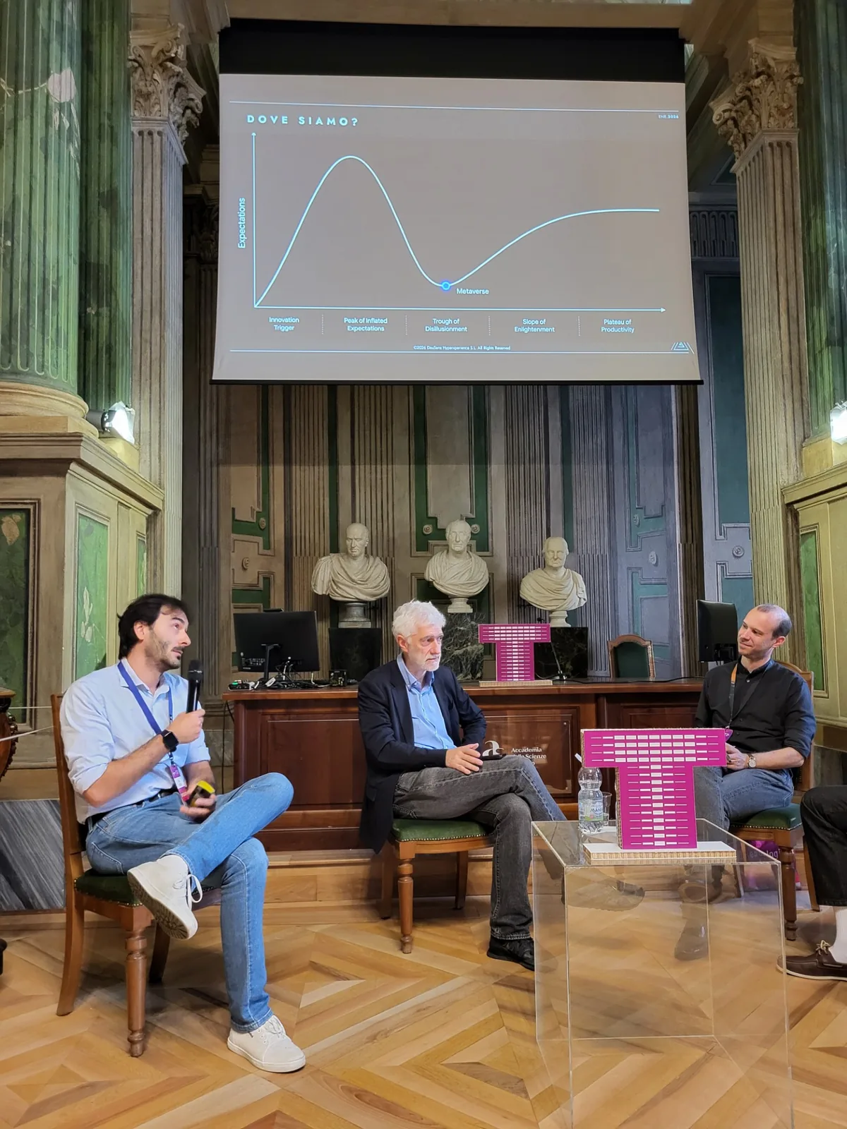 Tre profili molto diversi —patrimonio culturale, tecnologia di frontiera, analisi critica dei media— convergenti sulla stessa domanda: il metaverso è fallito, o semplicemente l'abbiamo capito male? Il punto di partenza scelto da DeuSens è stato volutamente disincantato: il metaverso non è fallito perché era sbagliato. È arrivato troppo presto. E soprattutto, è stato venduto come risposta prima ancora che qualcuno si ponesse la domanda giusta.