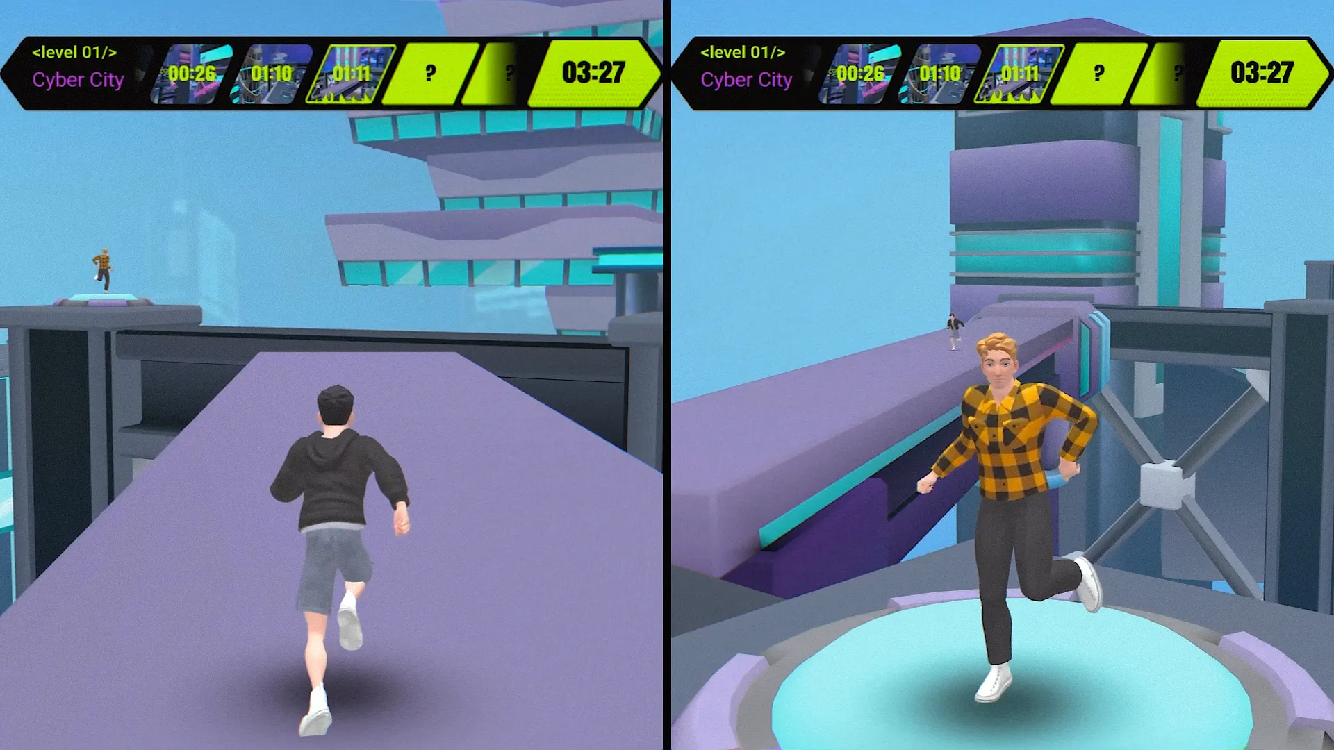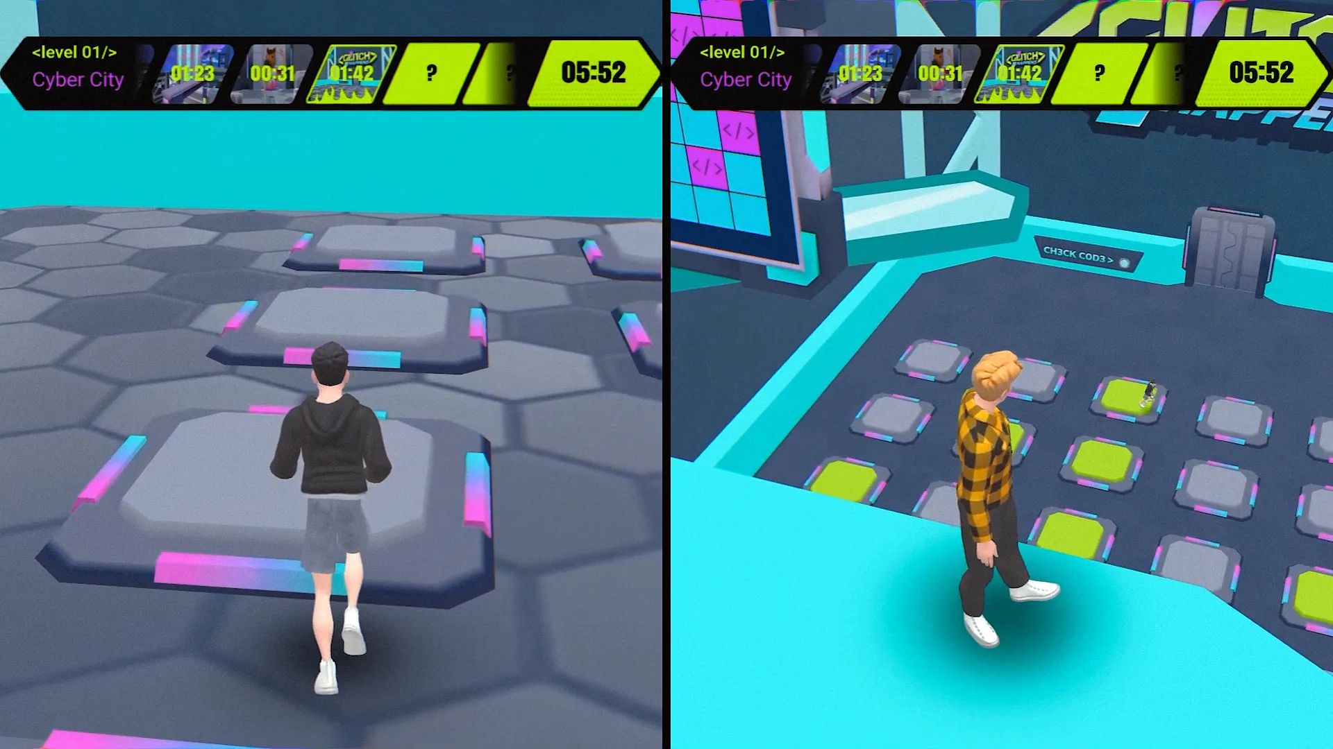 Glitch Happens is not a brand activation or an event experience. It is an original video game, developed entirely by DeuSens for Meta Horizon Worlds, that demonstrates the studio's ability to take on digital entertainment projects from start to finish: from concept and mechanics design through programming, 3D art, audio and platform launch.