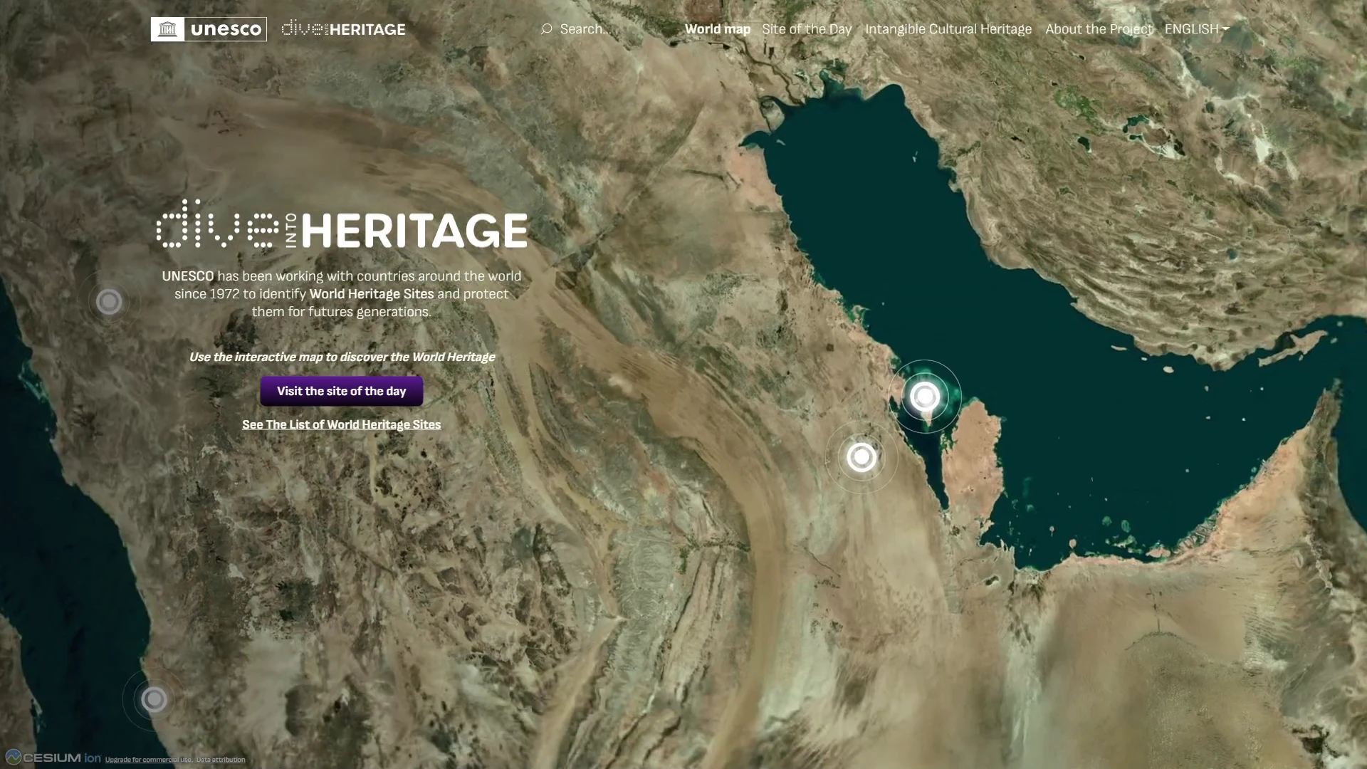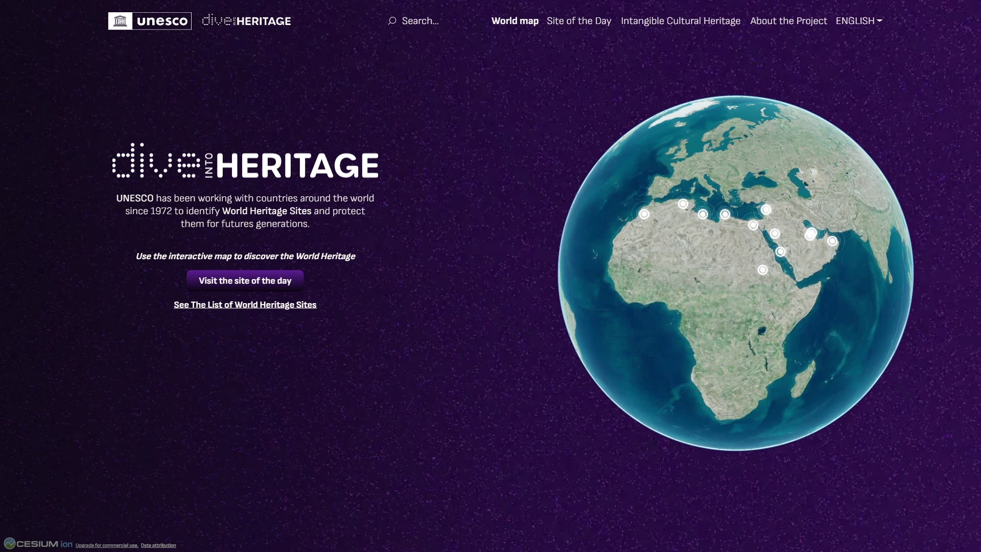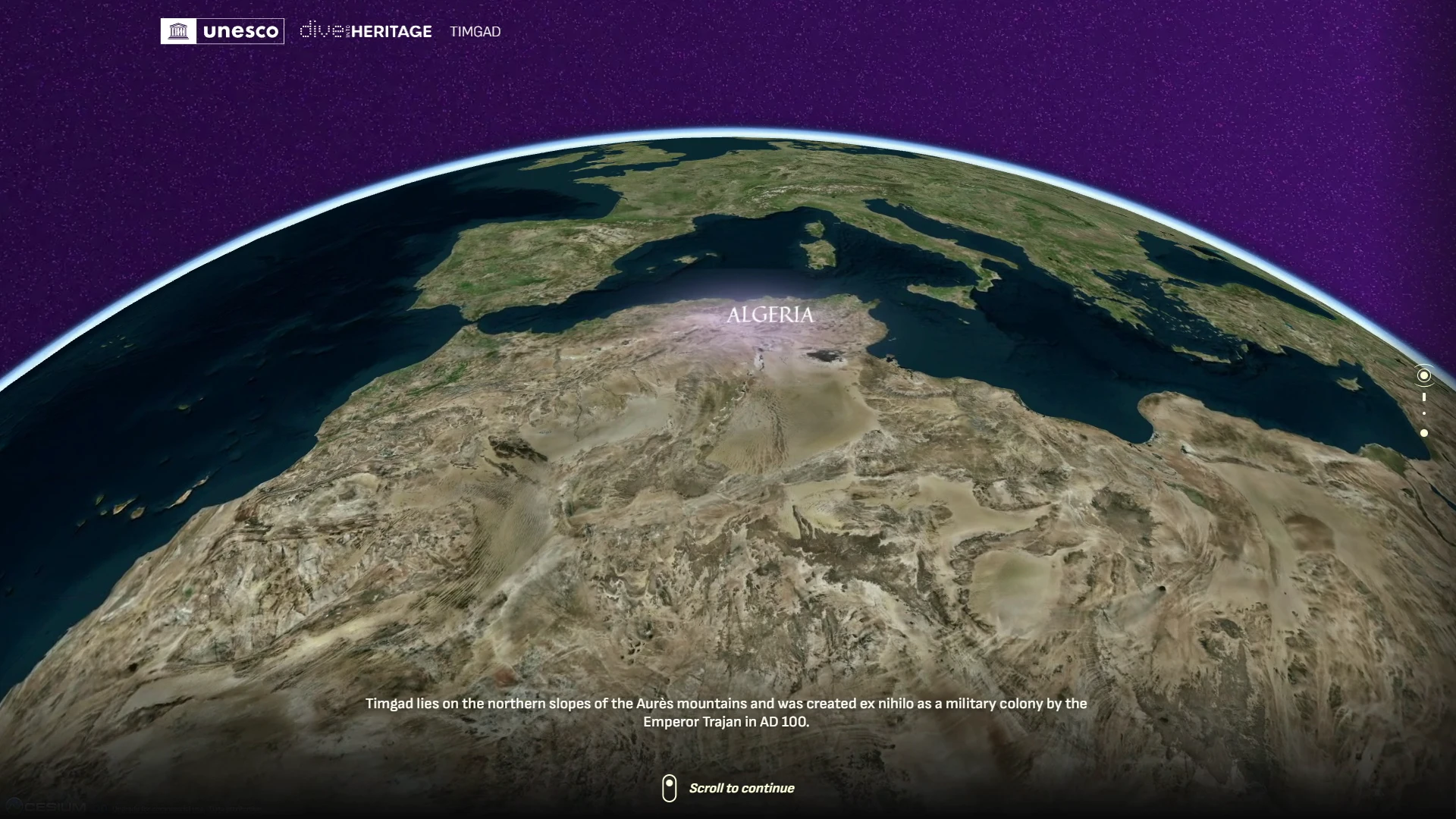 La experiencia del usuario en la plataforma es totalmente interactiva y accesible desde navegadores web, tanto en ordenadores como dispositivos móviles. El punto de partida es un mapa 3D del globo terráqueo desde el que se pueden seleccionar las distintas localizaciones disponibles.