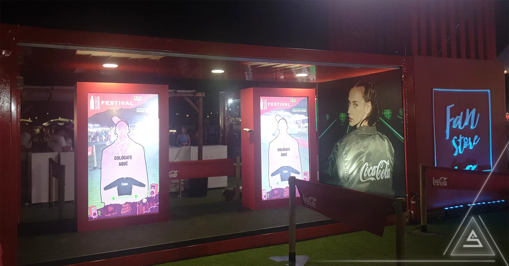 Tras nuestra participación en la edición de 2021, la agencia Method decidió volver a contar con la Hiperexperiencia de DeuSens para introducir en el recinto dos FunMirror, que sirvieron de probadores virtuales de la nueva colección de la Fan Store de Coca-Cola, que fueron colocados en un stand próximo a la zona del escenario.