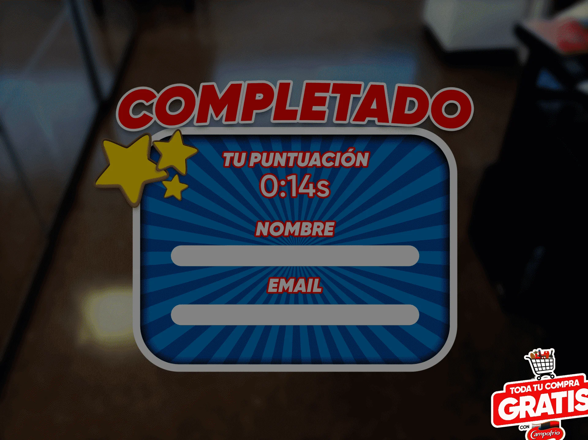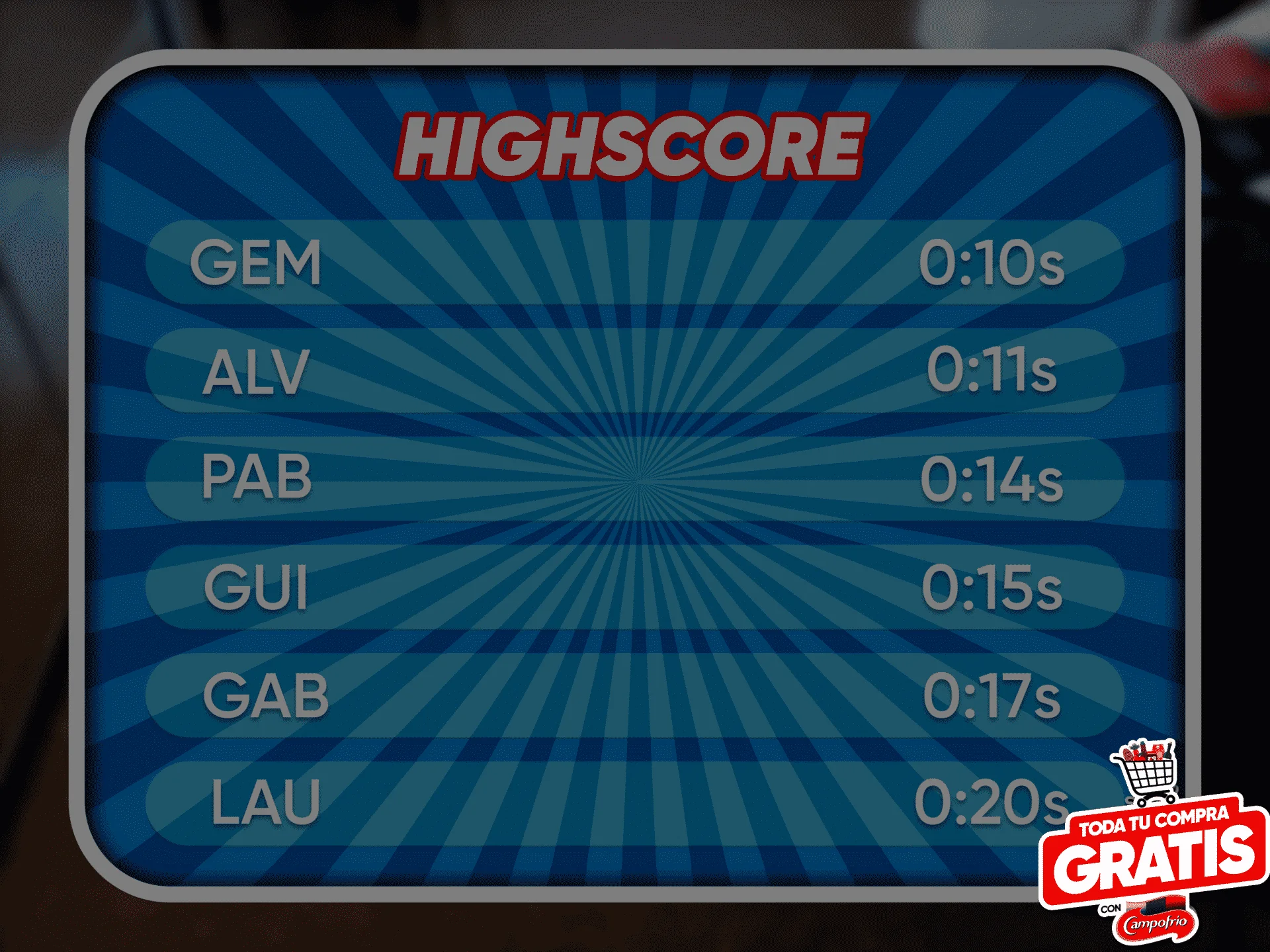 La finalidad del minijuego consistía en que el usuario, tras elegir uno de los menús Campofrío, encestase la combinación de productos, pertenecientes al menú seleccionado, en el carro de la compra virtual en el menor tiempo posible. Tras conseguirlo, la app le pediría sus datos para registrar su tiempo y aparecer en el highscore.