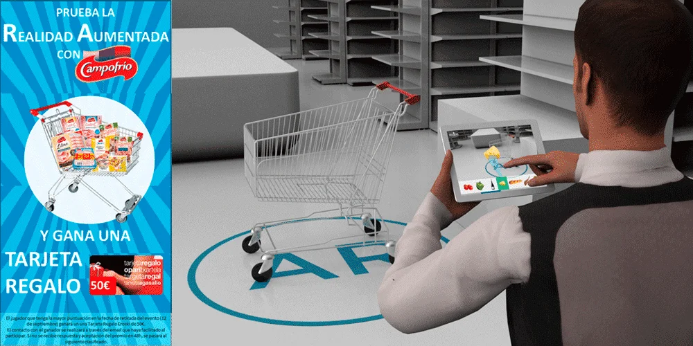 Realidad aumentada Campofrío fue una solución que potenciaba la promoción de la marca denominada "toda tu compra gratis". Mediante la combinación de Realidad Aumentada y gamificación, el cliente obtenía una experiencia que combinaba lo real con lo virtual. El consumidor utilizando la tablet provista, debía apuntar al gran marcador del suelo para comenzar la Hiperexperiencia. Posteriormente, mediante el uso de la Realidad Aumentada, aparecía un carro de la compra virtual, totalmente realista en tamaño y dimensiones, consiguiendo así una Hiperexperiencia más inmersiva.