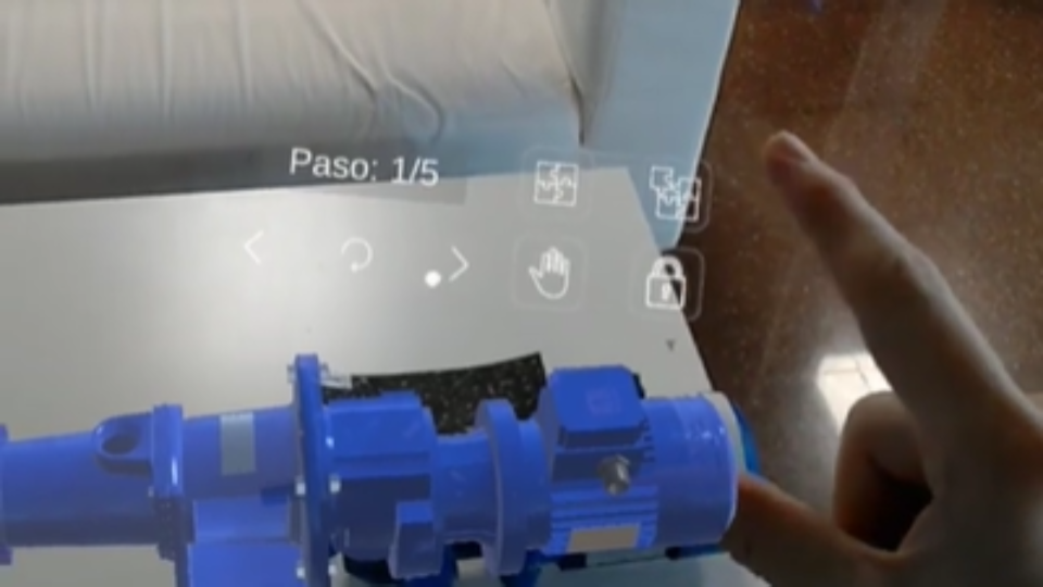 Gracias a esto, el técnico contaba con una replica idéntica del objeto, que, mediante animaciones 3D le iba mostrando los pasos a seguir y la forma de realizarlos para finalizar el mantenimiento correctamente. Mediante el uso de esta tecnología, el operario contaba con una metodología que no daba lugar a error, ya que podía comprobar paso por paso el proceso a ejecutar y realizarlo en tiempo real, visualizando una representación a escala real de las piezas a montar y desmontar que le sirve de guía.