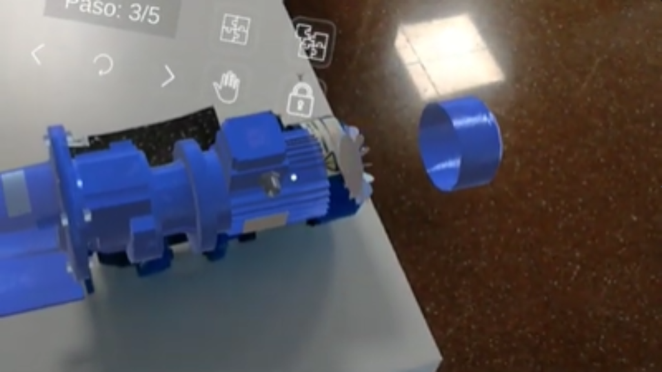 Además del uso de este proyecto para el mantenimiento "on the fly", el mismo proyecto también podía utilizarse para la formación y el entrenamiento de nuevo personal de la empresa. Esto lo conseguimos incorporando una funcionalidad a la aplicación mediante la cual no era necesaria la presencia de la bomba física real para poder visualizar el modelo 3D y la representación de montaje y desmontaje con todos los pasos a seguir. De esta forma, cualquier técnico en fase de formación, podía visualizar el proceso completo mediante la representación 3D de la bomba y aprender sus fases, sin la necesidad constante de tener a otro técnico experimentado que le enseñase.