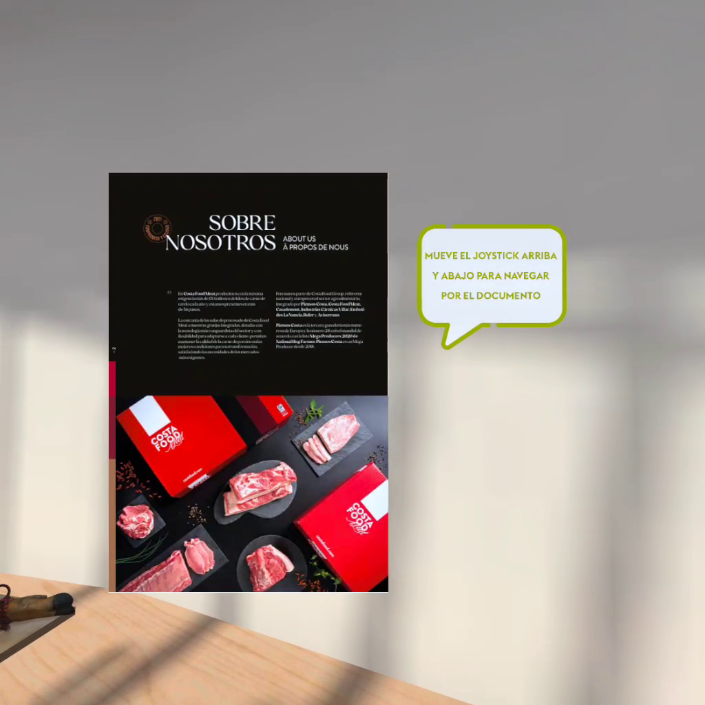 El usuario al colocarse las gafas de Realidad Virtual se teletransportaba al mundo virtual de Costa Food Group y aparecía en el centro del gran espacio corporativo creado. Dentro de este mundo virtual los usuarios podían moverse de forma sencilla por un entorno multimedia inmersivo, reproducir vídeos integrados en diferentes pantallas distribuidas por la sala o conocer más información sobre las marcas que forman la compañía. Los visitantes también tuvieron “al alcance de su mano” algunos de sus productos modelados en 3D, permitiéndoles cogerlos e incluso obtener más información sobre ellos.