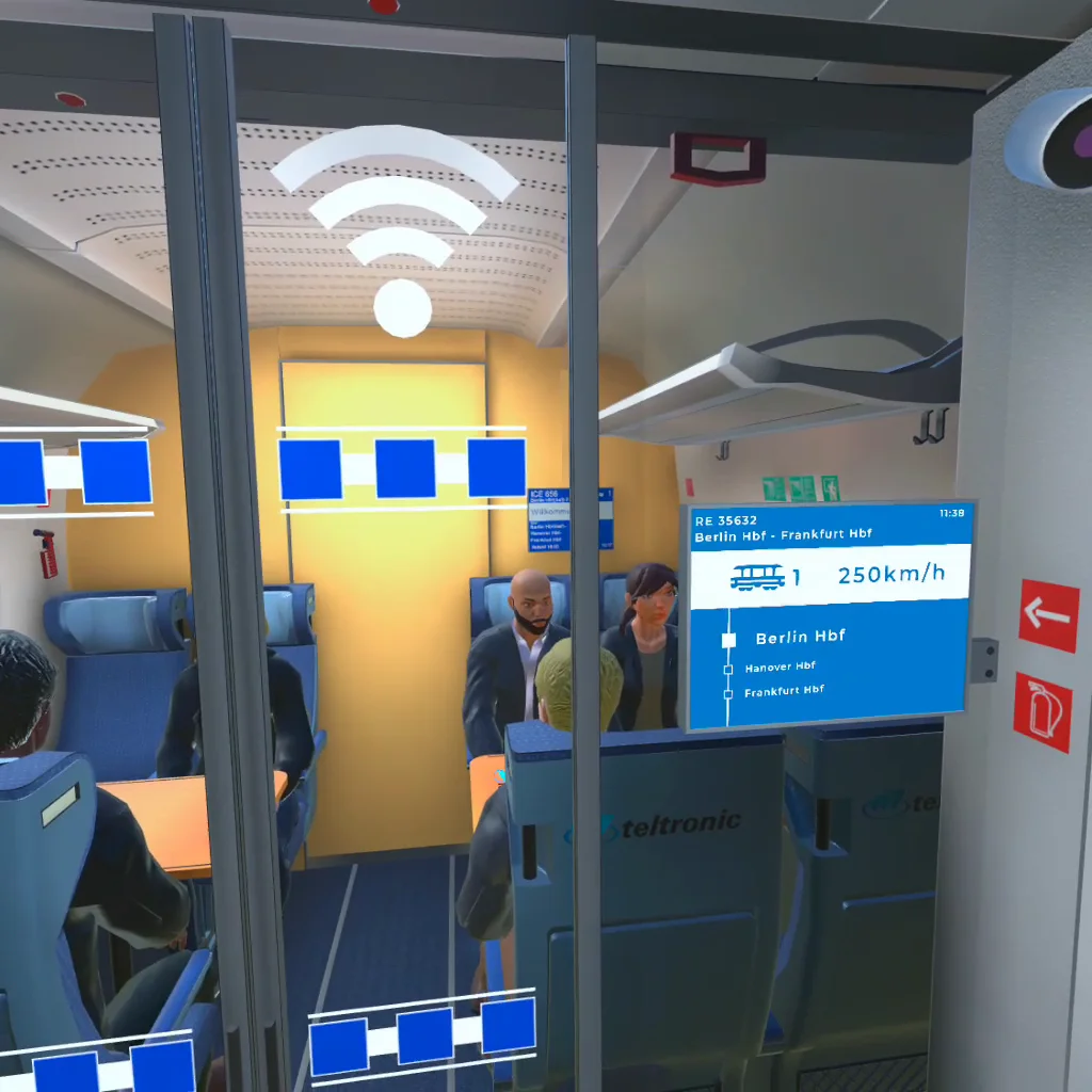 Mediante esta novedosa Hiperexperiencia de Realidad Virtual, los visitantes del stand de Teltronic pudieron descubrir, de forma gamificada, el funcionamiento y la innovación de sus soluciones de comunicación, "teletransportándose" a diferentes escenarios de un tren virtual y de un centro de control de comunicación, todos ellos modelados por completo en 3D por el equipo de DeuSens.