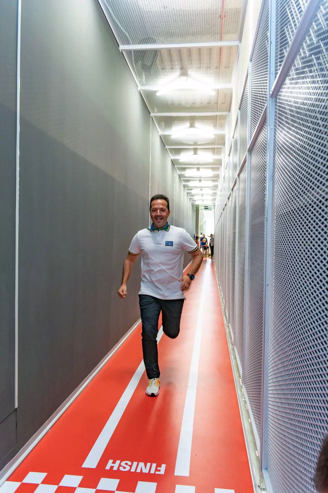 Qui i clienti avevano la possibilità di testare diversi modelli di scarpe su una vera pista, percependone il comportamento reale durante la corsa. Inoltre, potevano partecipare a una sfida di sprint sui 30 metri, cercando di ottenere il miglior tempo possibile.