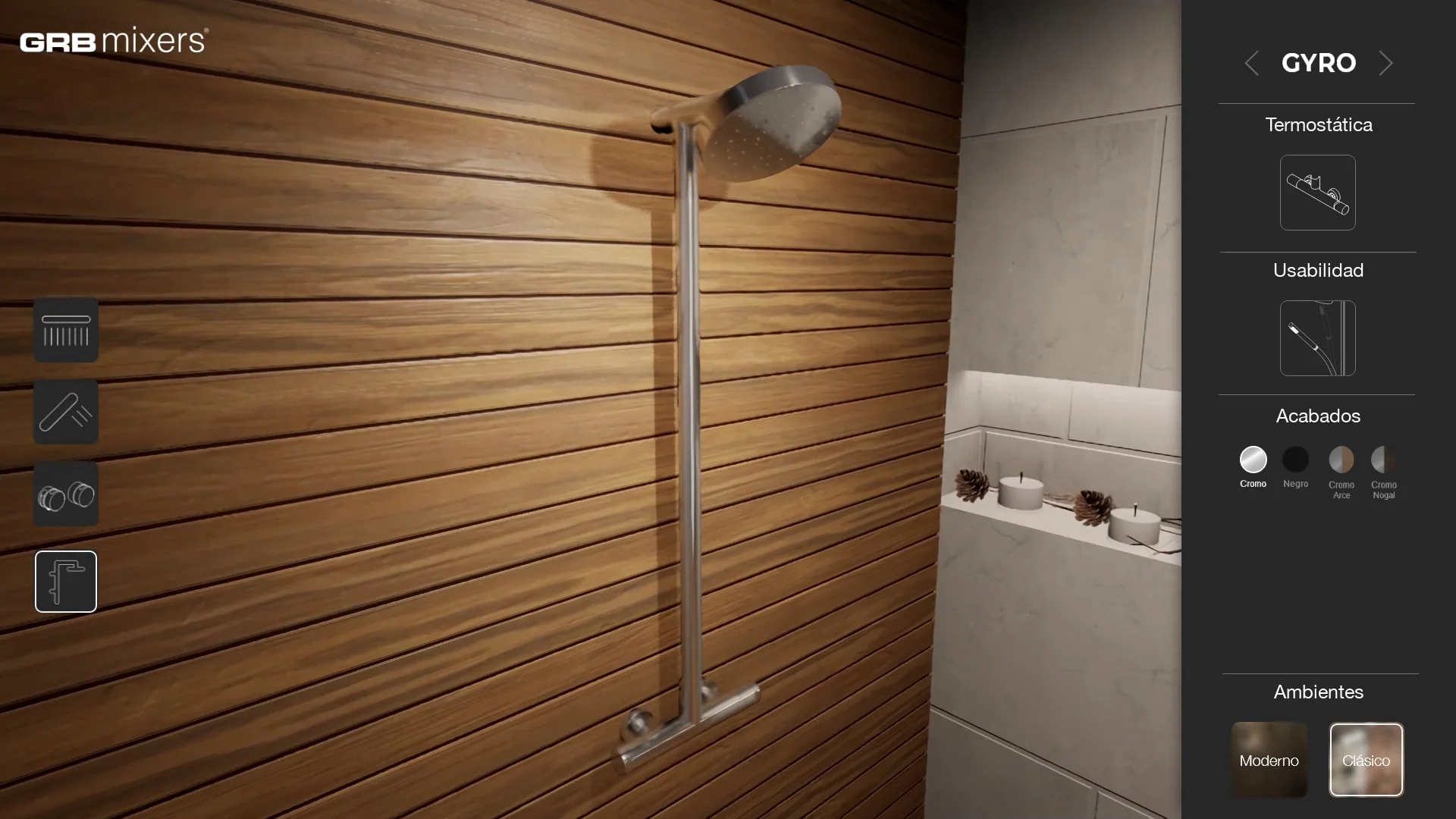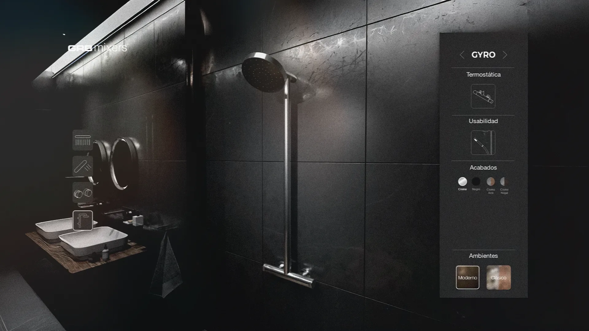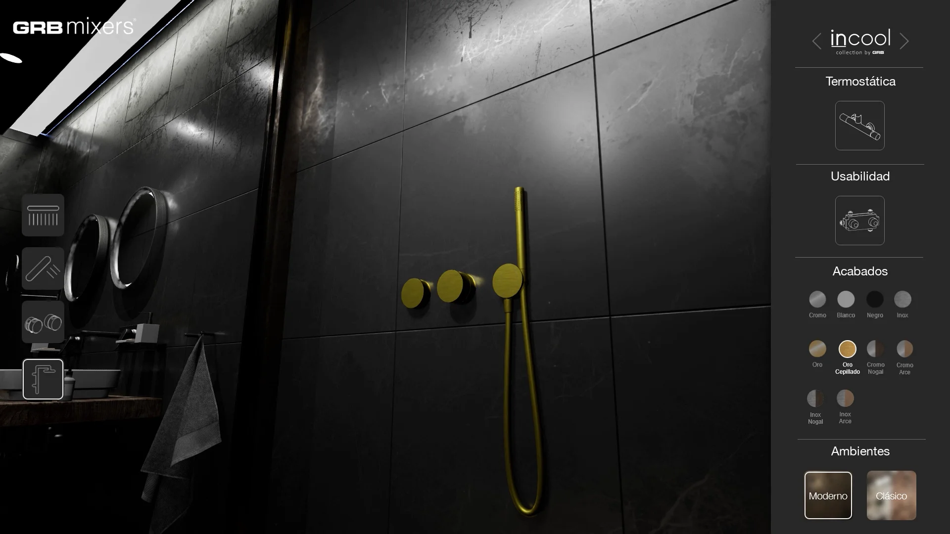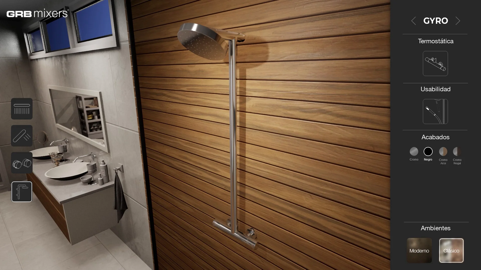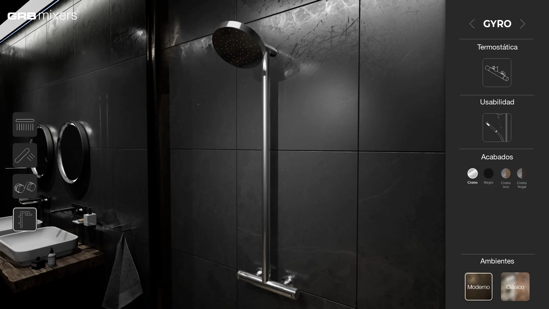 Utilizzando questo visualizzatore 3D interattivo, l'utente poteva visualizzare i due prodotti GRB integrati in due diversi ambienti bagno, uno con uno stile più classico e l'altro con un design e elementi più moderni. L'utente poteva anche modificare l'aspetto dei prodotti, selezionando tra diversi colori, materiali e finiture. Grazie a queste due caratteristiche, abbiamo offerto all'utente l'accesso a un gran numero di combinazioni, consentendogli di immaginare e visualizzare come questi prodotti sarebbero stati in diversi scenari.