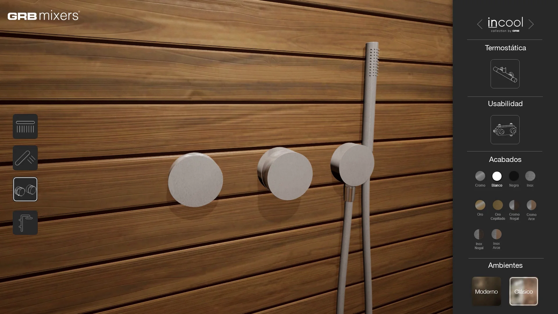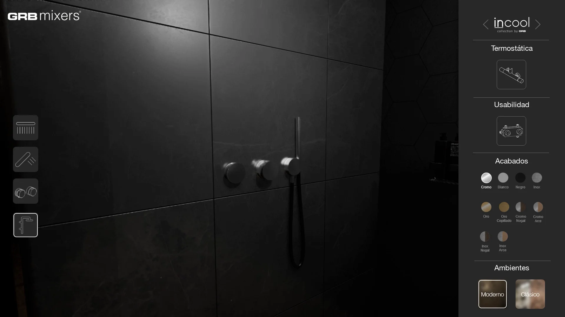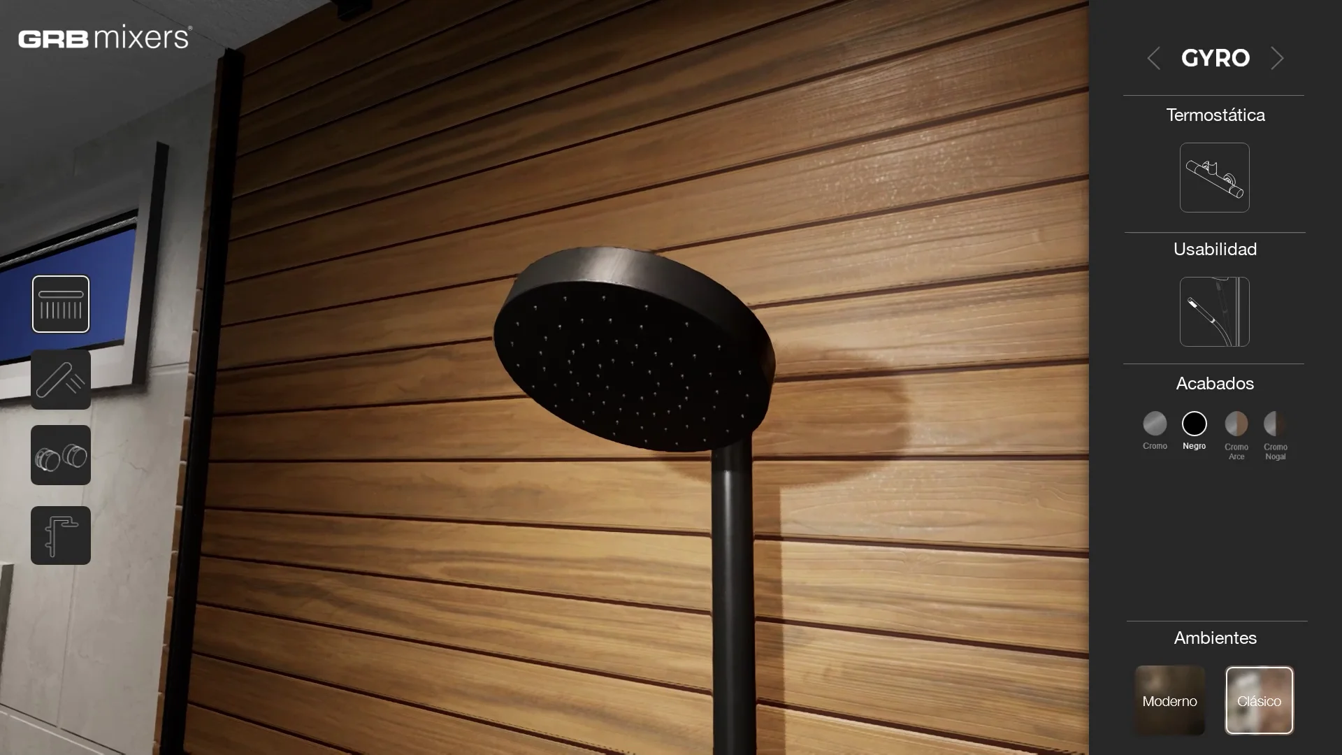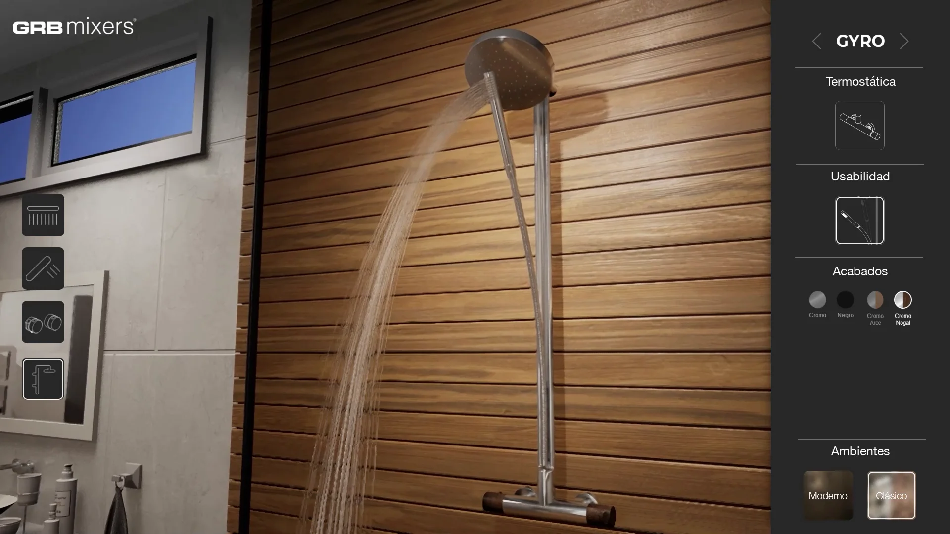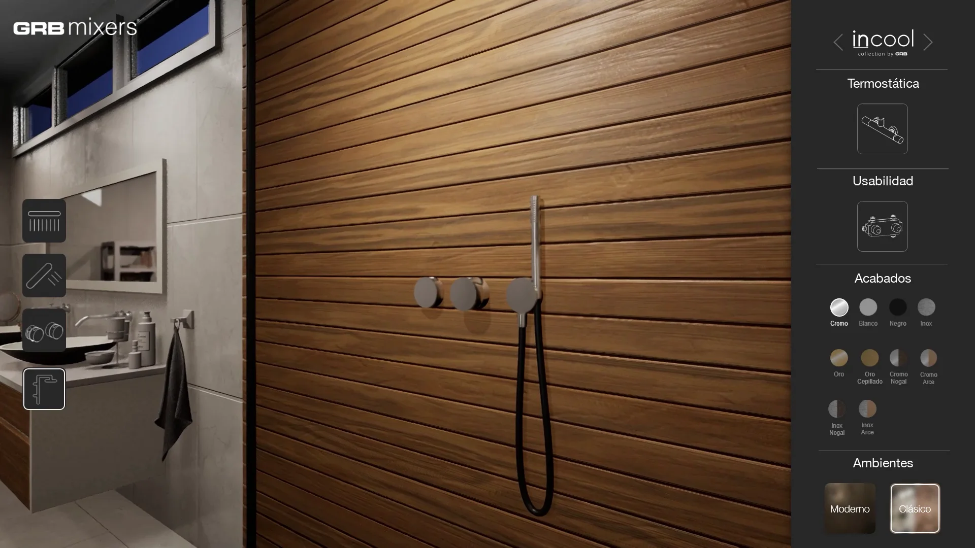 Utilizzando questo visualizzatore 3D interattivo, l'utente poteva visualizzare i due prodotti GRB integrati in due diversi ambienti bagno, uno con uno stile più classico e l'altro con un design e elementi più moderni. L'utente poteva anche modificare l'aspetto dei prodotti, selezionando tra diversi colori, materiali e finiture. Grazie a queste due caratteristiche, abbiamo offerto all'utente l'accesso a un gran numero di combinazioni, consentendogli di immaginare e visualizzare come questi prodotti sarebbero stati in diversi scenari.