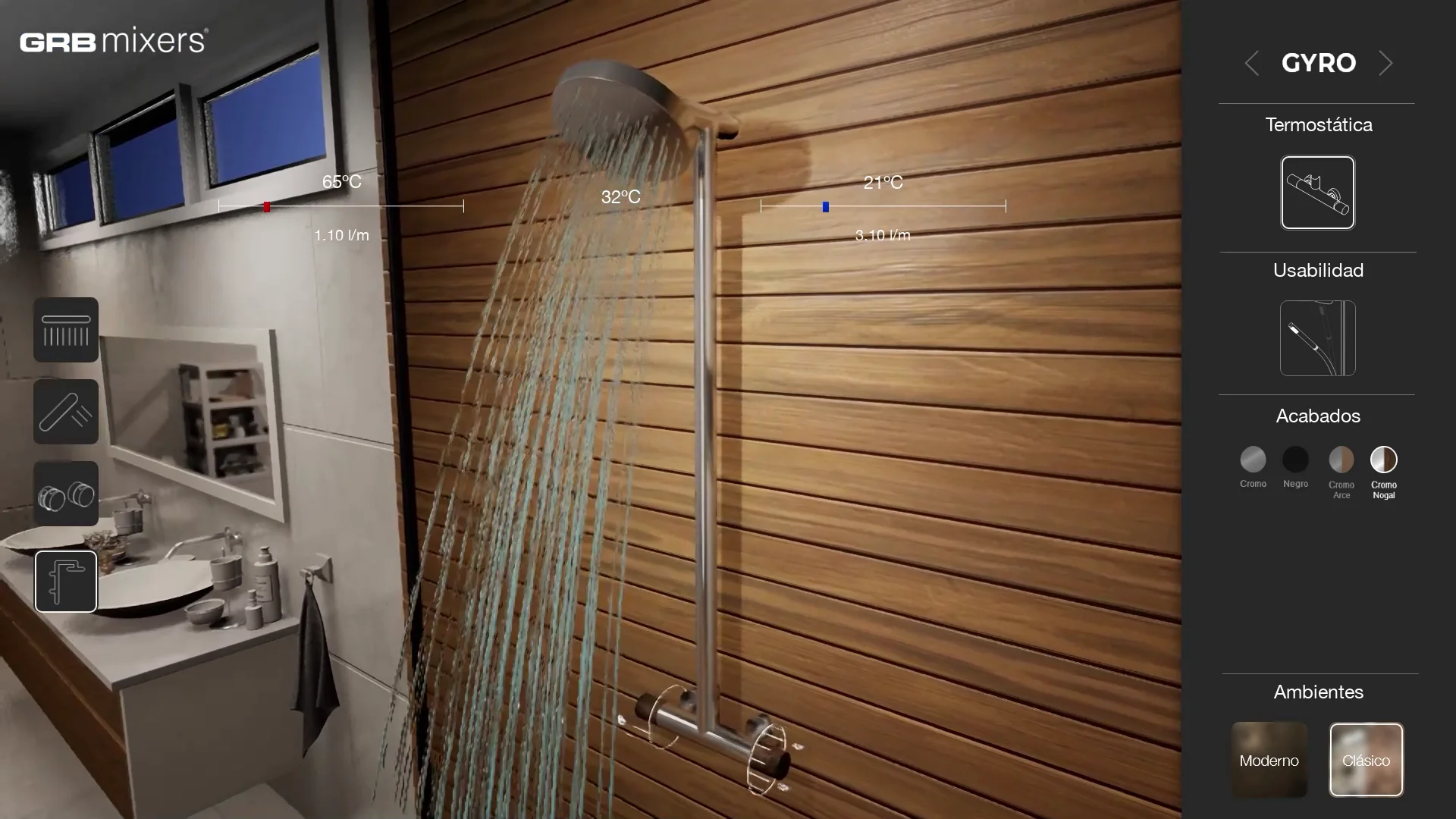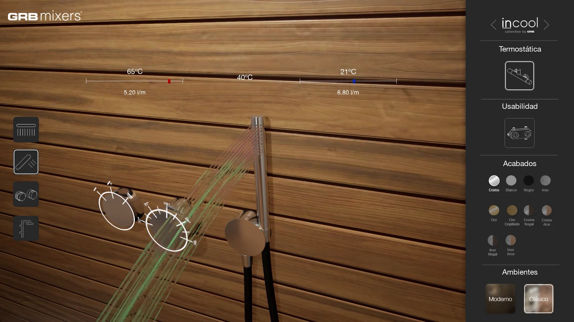 Oltre a queste innovazioni, entrambi i prodotti includevano anche un sistema termostatico che è stato rappresentato anche nell'esperienza e grazie al quale l'utente poteva calibrare la temperatura e variare il flusso dell'acqua che usciva dalla doccia, con l'obiettivo di apprezzare come il funzionamento del sistema termostatico bilanciava la temperatura dell'acqua per mantenerla alla temperatura adeguata.